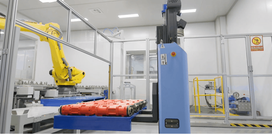 該項目投入使用的是螞蟻機器人堆高式無人叉車AMR,是一款高效率、高安全、高可靠性的機器人,具有環境自適應和靈活高效的特征,能實現跨車間、跨產線的長距離、大噸位、高舉升的貨物平面搬運作業。